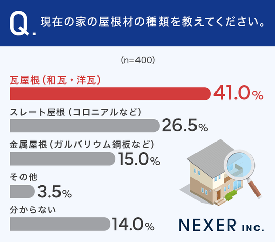 ■41.0%が「瓦屋根」と回答。自宅の屋根材、もっとも多いのは?