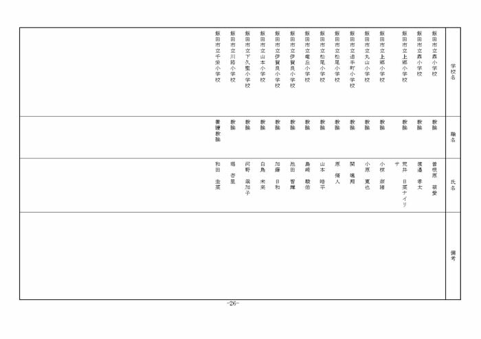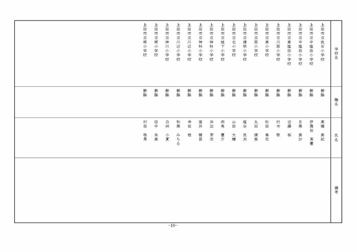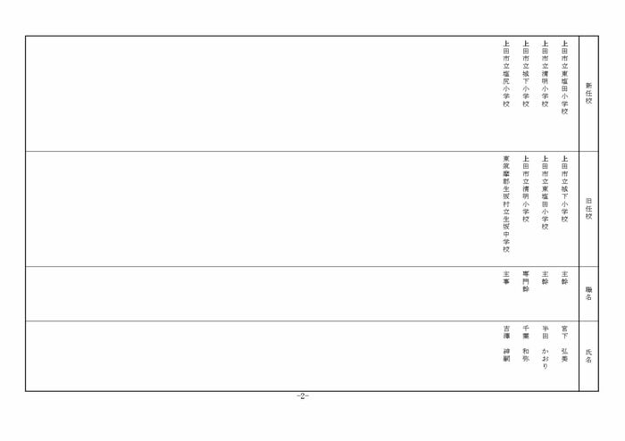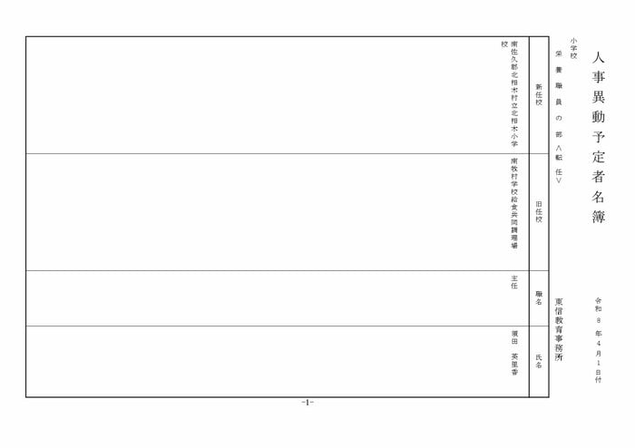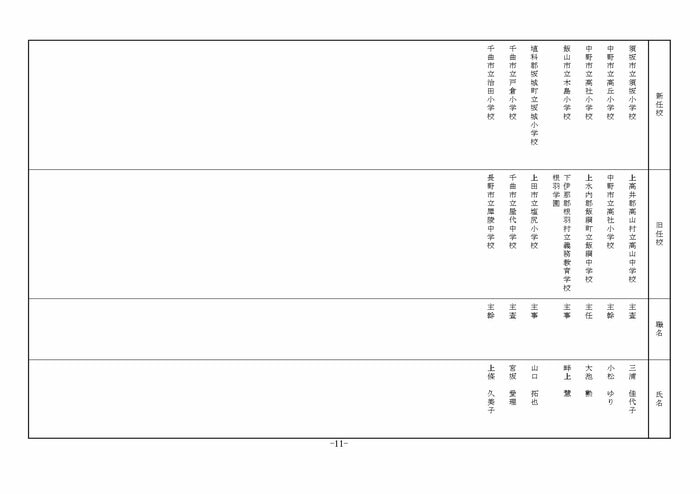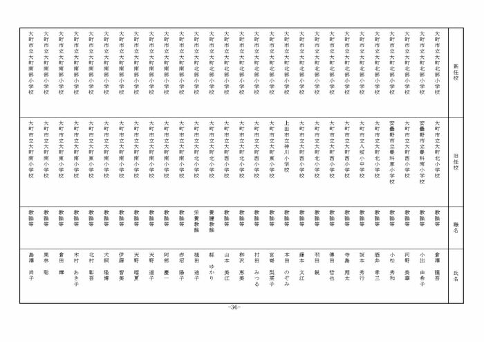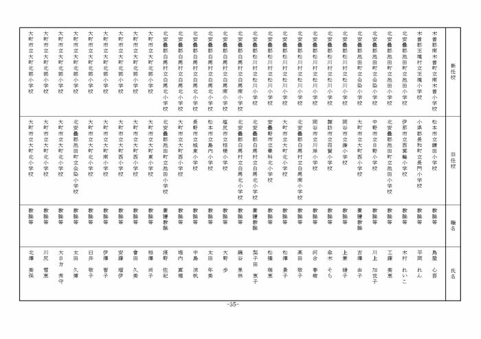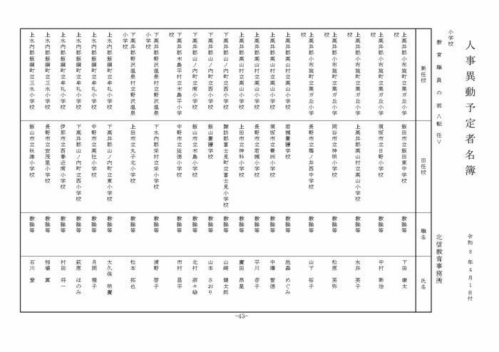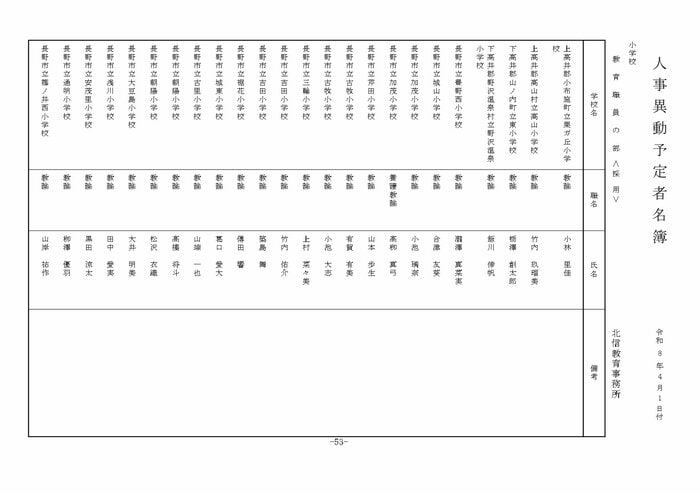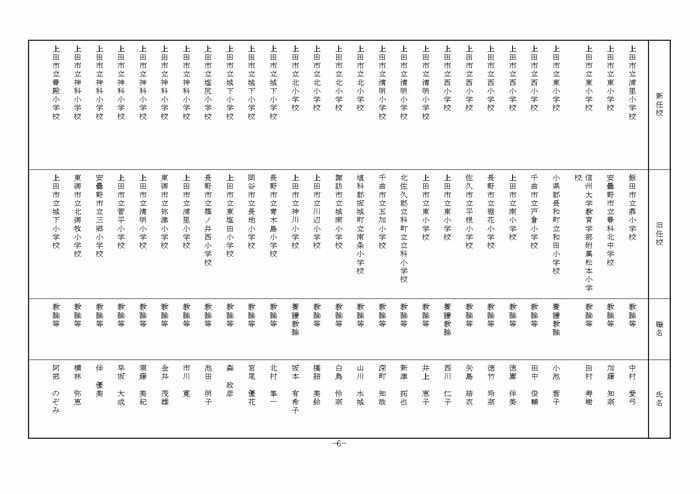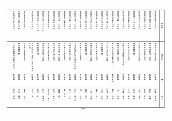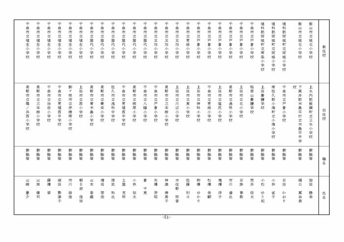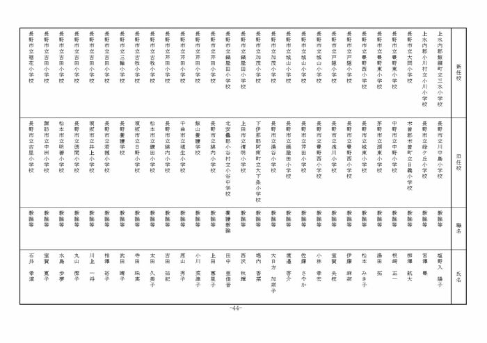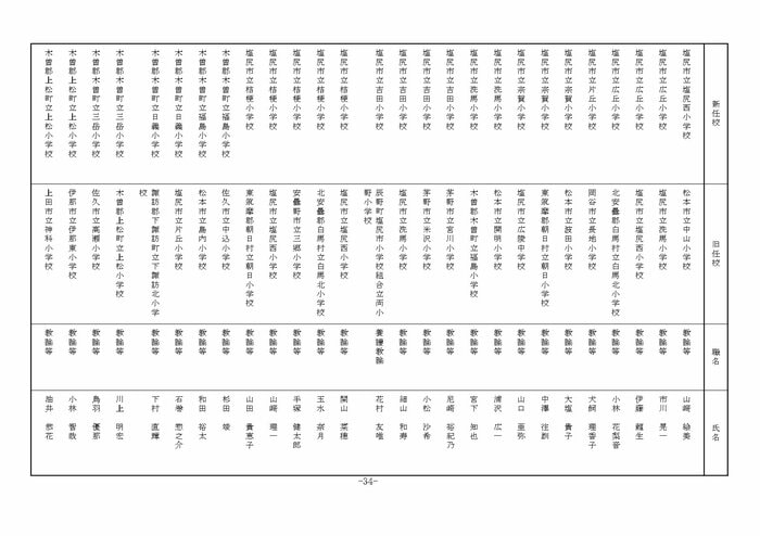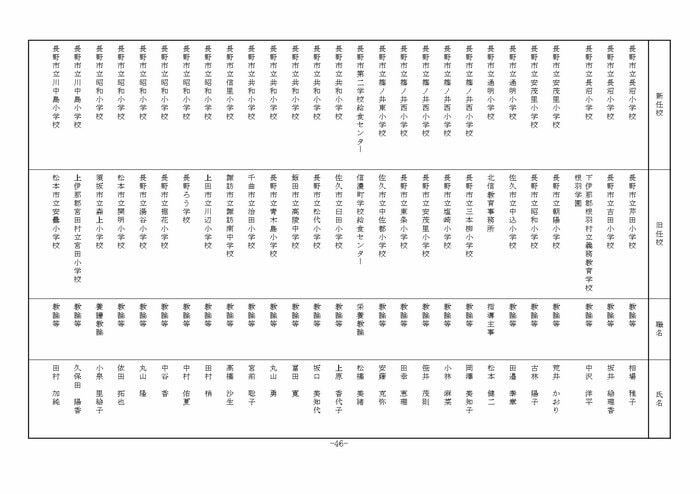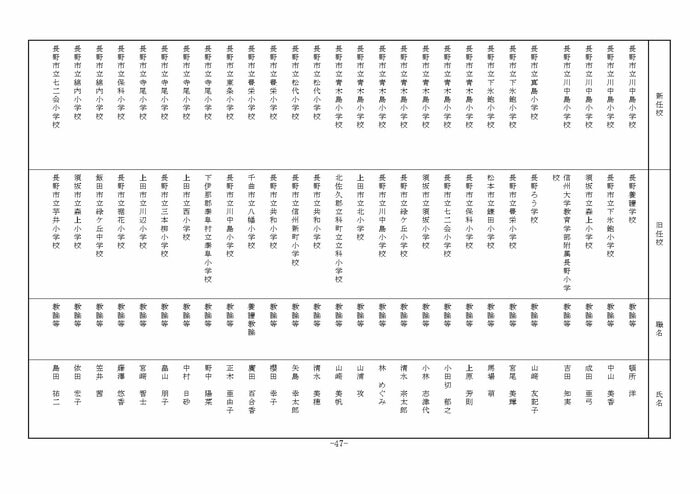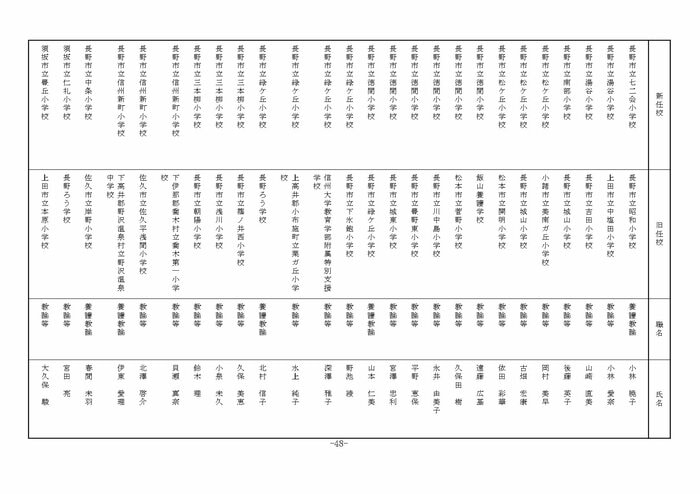 北信地域の小学校へ異動する教諭等は以下の通り。