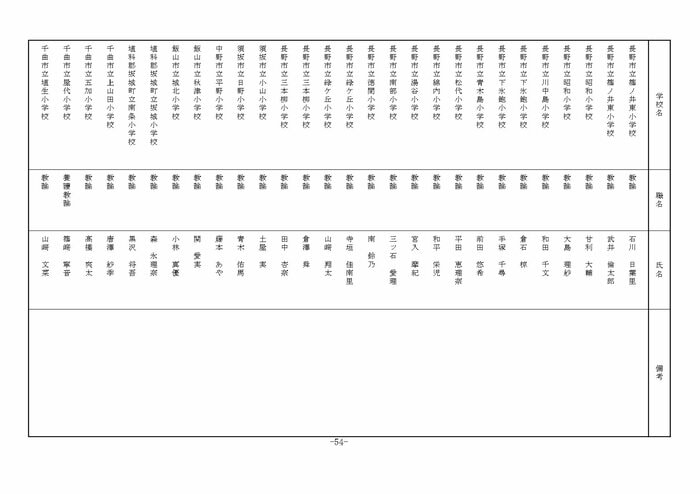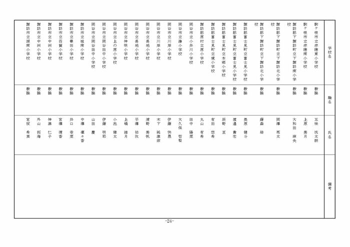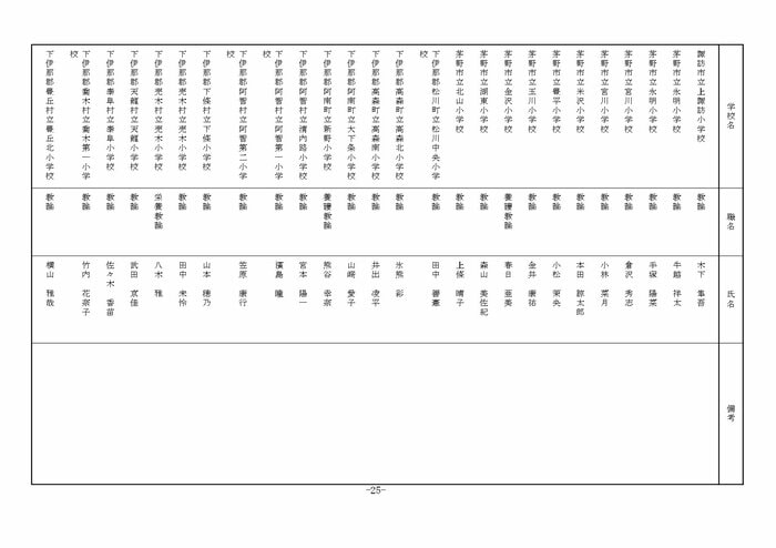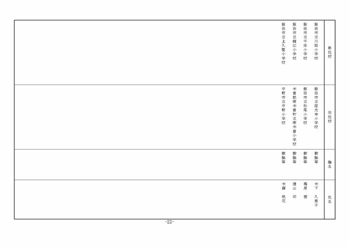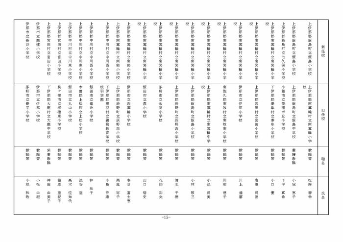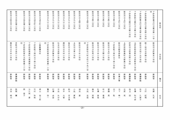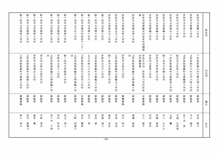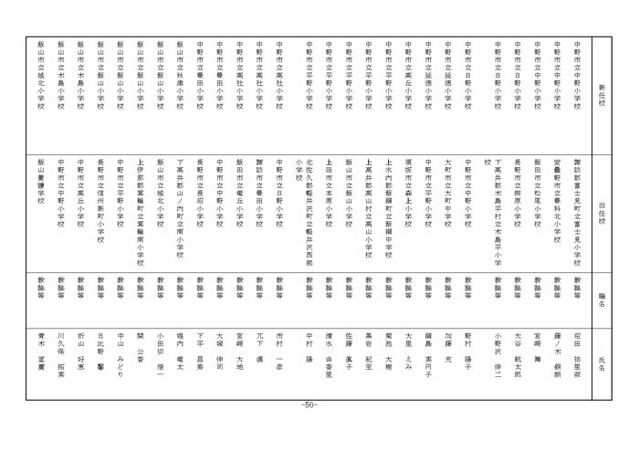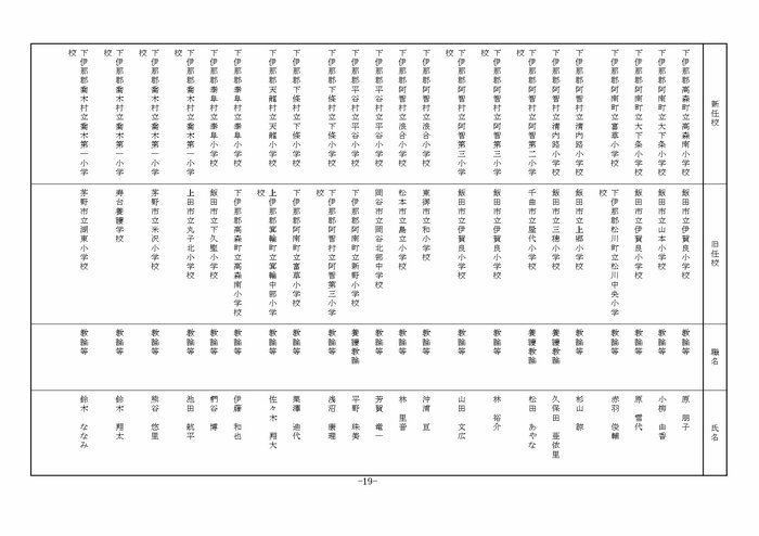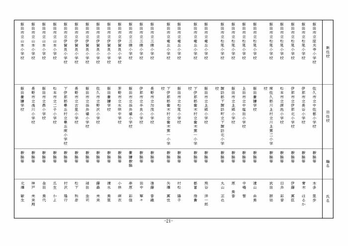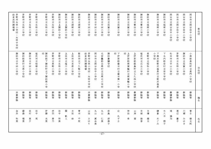 南信地域の小学校へ異動する教諭等は以下の通り。