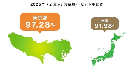 2025年の東京都セット率は97.28%と、全国平均を大きく上回る結果となりました。