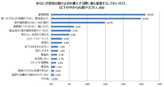 - 日焼け止めのタイプ別意識調査。大人の敏感肌用は「機能」、赤ちゃんから使える日焼け止めは「肌へのやさしさ」。