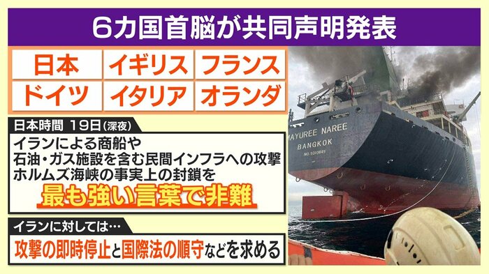 峯村氏が触れた、“6カ国の共同声明”とは、19日に、日本・イギリス・フランス・ドイツ・イタリア・オランダの6カ国首脳によって出された共同声明のことです。