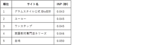 Core Web Vitalsの新指標 INPで優秀なTOP5社