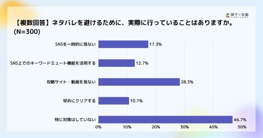 一方、「攻略サイト・動画を見ない」が28.3%、「SNSを一時的に見ない」が17.3%、「SNS上でのキーワードミュート機能を活用する」が12.7%など、一定数のユーザーは自衛的な行動を取っていることも分かります。