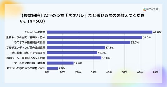 ・「重要キャラクターの生死・裏切り・正体(61.3%)」、「ラスボスや最終局面の展開(53.7%)」など、物語の核心情報ほどネタバレ認識が強い
