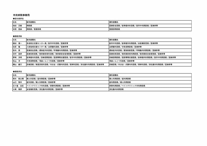 市民病院事業管理者に五十嵐 修一副院長が充てられ、理事には小野 秀之経済部長、鈴木 浩信技監、本間金一郎総務部長が就く。
