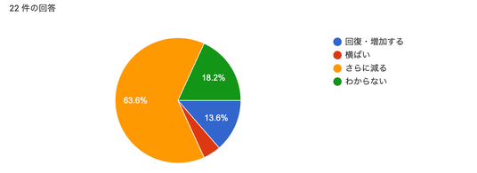 約64%が「さらに減る」と予測、回復期待は13.6%にとどまる