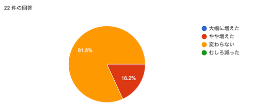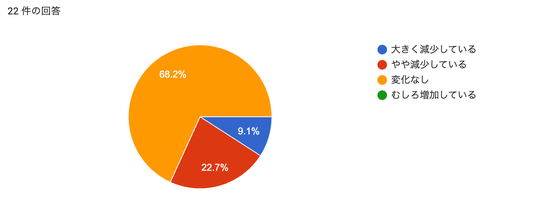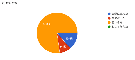 「10%程度減少」「20%程度減」など定量的な回答がある一方、「特になし」という回答も複数見られました。