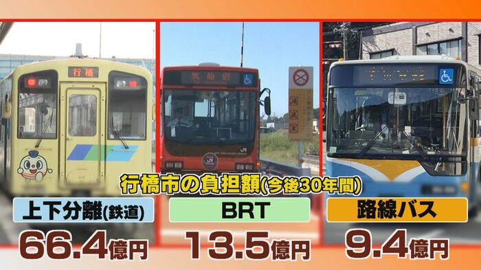 というのも資産の結果、今後30年間の行橋市の負担額は、鉄道を維持する『上下分離式』では66億4000万円かかるのに対し、『路線バス』では、9億4000万円にまで抑えられると出たためだ。