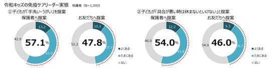 健康行動の理由まで理解し、免疫の視点を身につけている今の令和キッズたち。実は、自分自身の体調管理にとどまらず、周囲の人にも健康行動を促す「免疫ケアリーダー」としての一面も見せています。