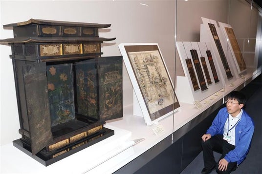 福井県坂井市の龍翔博物館で企画展「コレクション展 -坂井の人びとの信仰-」が14日から始まった。目玉は大善寺(坂井町下兵庫)所蔵で福井県内では初公開となる鎌倉時代後期作「木造黒漆塗厨子(もくぞうくろうるしぬりずし)」。左右の扉に描かれた美しい観音浄土の世界観は必見だ。