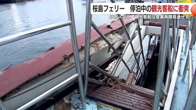 (動画で見る▶桜島フェリーが観光船に接触「突風で流された」けが人なしも観光船は損傷、営業見通せず)