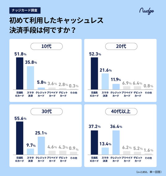 ~40代世代より5歳早期化。初めてのキャッシュレス決済手段は、交通系ICカードが主流~