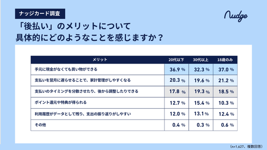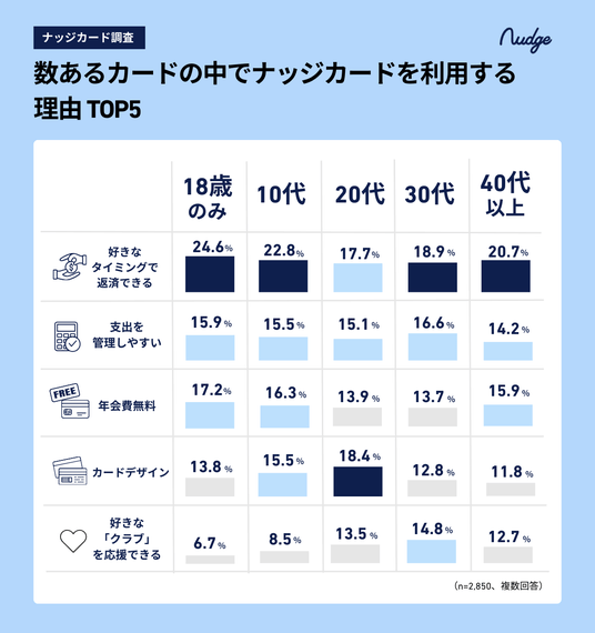 - ナッジカードが支持される理由は、「返済の柔軟性」