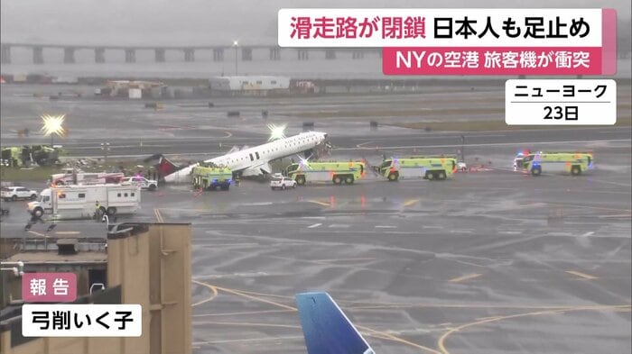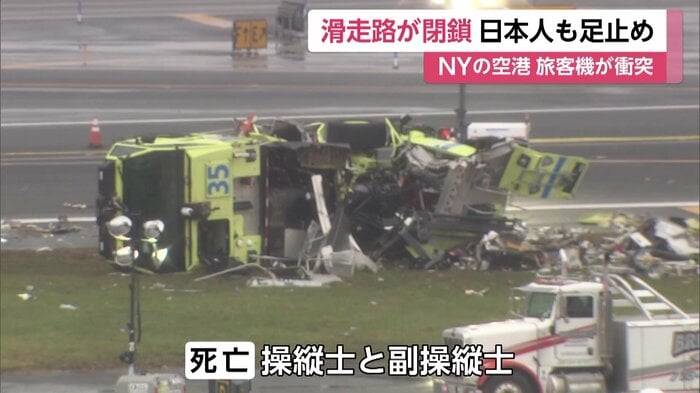 ニューヨークのラガーディア空港で起きた事故では操縦士と副操縦士が死亡し、日本人旅行客の足にも影響が及んだ。