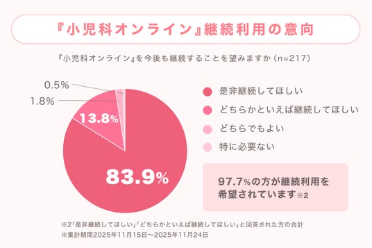 97.7%の方がサービス継続を希望、「いつでも小児科医に繋がる安心」が不安の解消に貢献しています