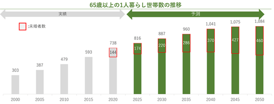 現在、日本国内における単身高齢者は約800万人にのぼり、