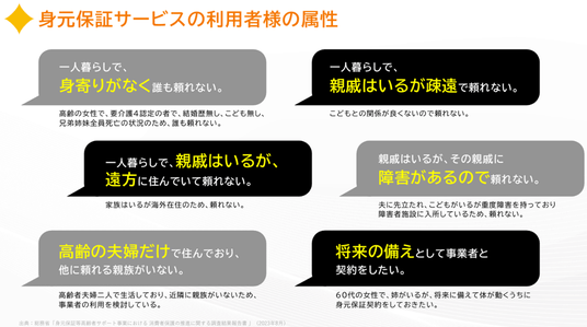 おひとりさま・おふたりさまの将来の不安を解決するために、身元保証サービスへの需要は年々高まっています。
