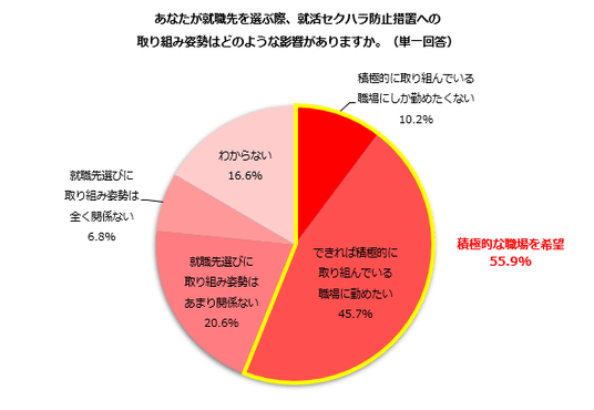 2.就活セクハラ防止措置への取り組み姿勢「積極的に取り組む職場を希望」55.9%