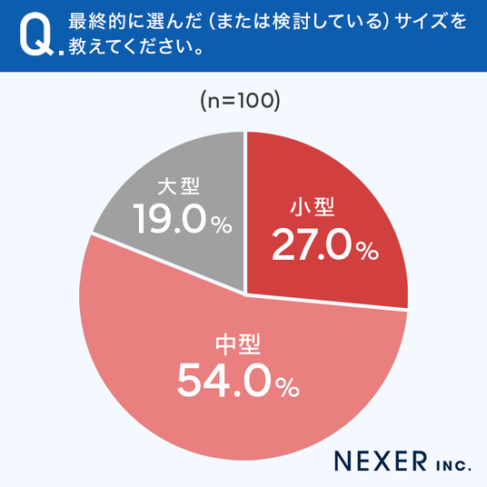 もっとも多かったのは「中型」で54.0%となり、過半数を占めました。「小型」は27.0%、「大型」は19.0%という結果です。
