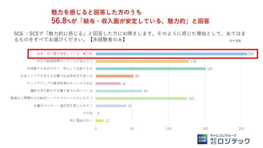- 条件提示により、未経験者の 15.3%が物流ドライバー職に「魅力を感じる」と回答- 魅力の源泉は「安定収入(56.8%)」に加え、「未経験でも始めやすい(41.2%)」「人間関係のシンプルさ(34.1%)」