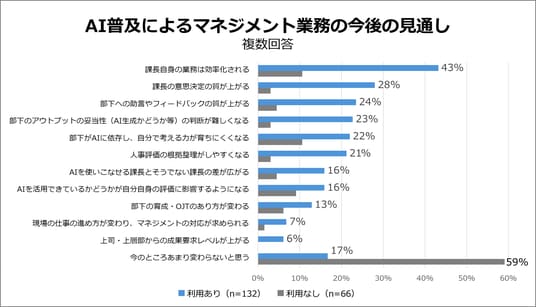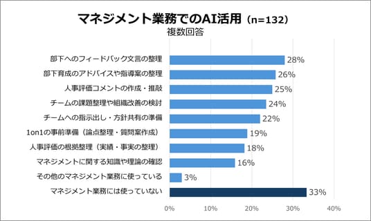 一方で、AI利用者のうち、マネジメント業務には使っていない課長が33%いることも明らかになりました。