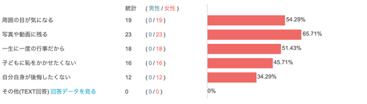 また、「周囲の目が気になる」「子どもに恥をかかせたくない」といった回答も多く、入学式が単なる学校行事ではなく、保護者としての立場や印象も意識される場であることが分かりました。