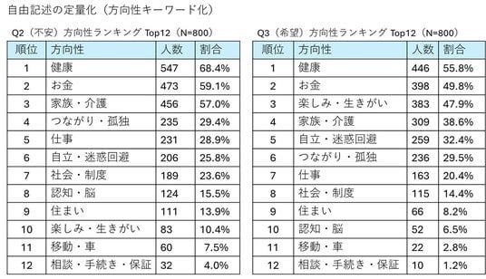 一方、希望は「理想像」というより、不安の原因を小さくする 準備・習慣・段取り(例:運動、貯蓄、住まい・支援の検討)として語る傾向が見られました。