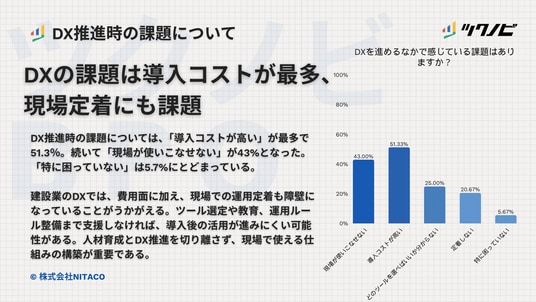 DX推進時の課題は導入コストが最多、現場定着にも課題