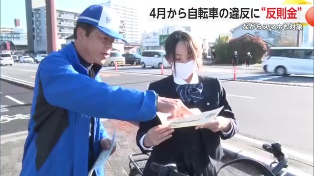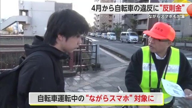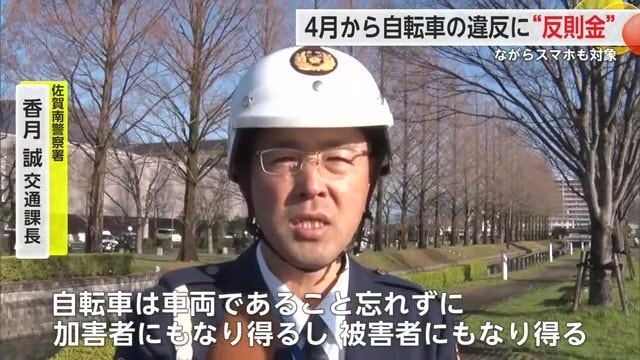 2026年4月から自転車の違反行為に反則金が導入されるのを前に、自転車で通勤・通学する人が多い佐賀市の交差点で、警察官らが違反となる行為などを自転車の利用者に伝える街頭指導を行った。