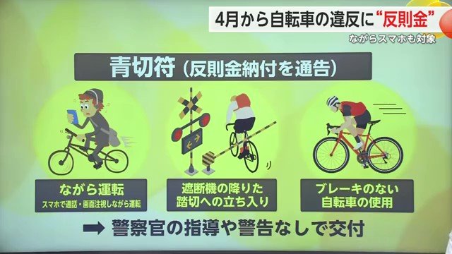 自転車の違反行為に2026年4月から反則金“青切符”が導入される。自転車の「ながらスマホ」「ながらイヤホン」も違反の対象。違反し交通事故を起こした場合などには、これまで同様、刑事手続きの対象になる。