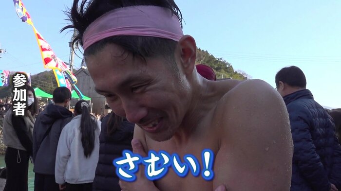 「寒いっす!」「今年も健康に家族そろって元気でと願いながらやった」と参加者たち。