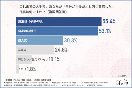 そこで今回、株式会社アニバーサリー(振袖・袴レンタル・フォトスタジオ「アイドルbyやまと」を運営 https://idolbyyamato.jp/)は、全国の20代~60代の男女を対象に、「大人の『節目・記念日』への意識」に関する調査を実施しました。