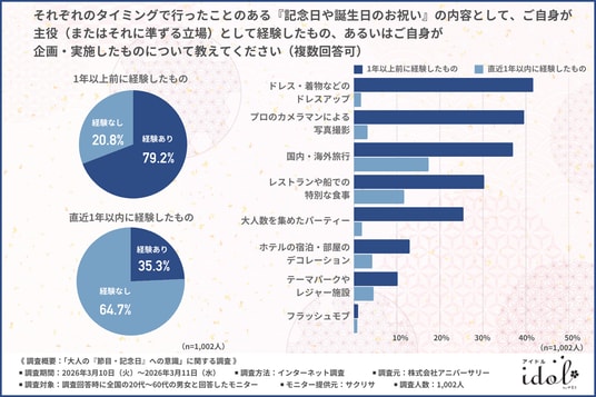 1年以上前に経験したものとして、「ドレスアップ」や「写真撮影」といった形に残る行動が上位に挙がりました。