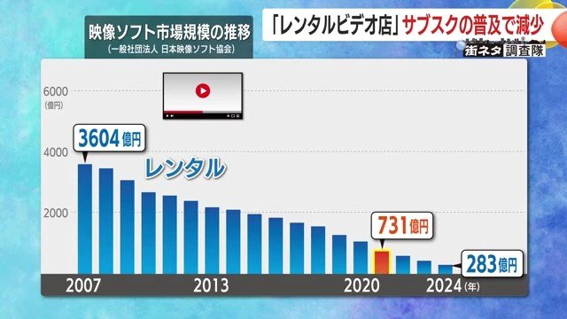 市場の縮小が続く中でも、工夫を重ねながら地域に根ざす場所であり続けようとするレンタルビデオ店の姿がそこにある。