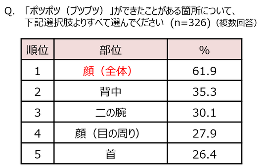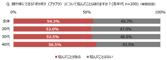 20代~40代女性の約2人に1人が悩むお肌の“ポツポツ”/特に「顔周り」が最も気になる結果に