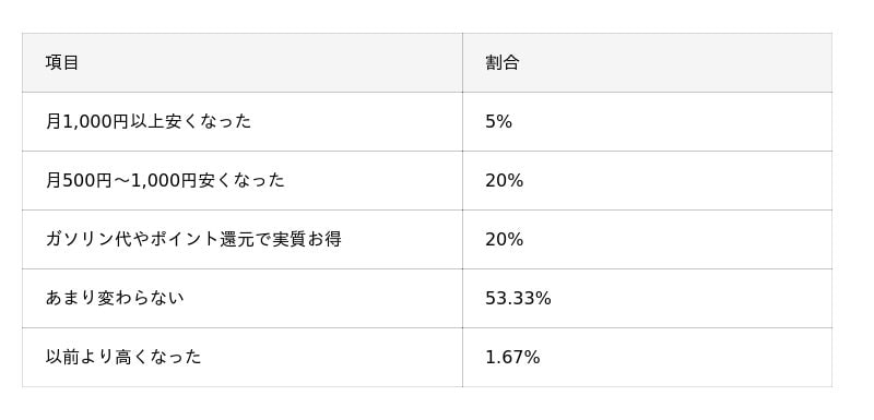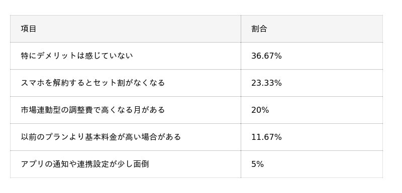 - 月々の電気代自体は53.33%が「あまり変わらない」と回答しているが、一方で「支払いがスマホ代と合算されて管理が楽」という声も多く、家計管理のし易さが満足度を支える一因となっている。