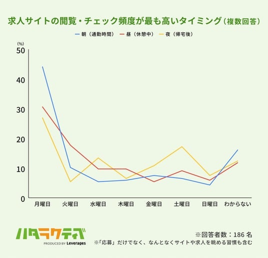 - 若手社員の約3人に1人は転職サイトを定期的にチェック。求人チェックのピークは「月曜の朝」