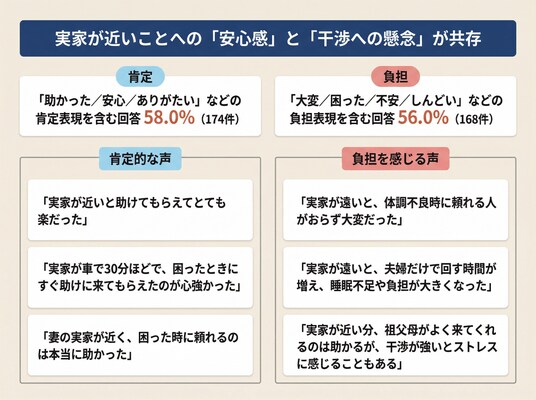 「実家との距離が近いと安心だが、近すぎると予定調整や気遣いが発生することもある」