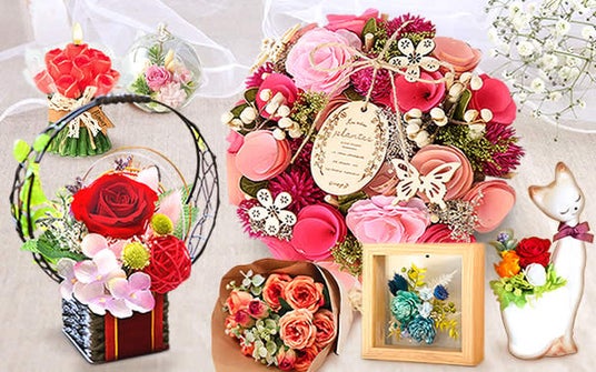 プリザーブドフラワーは生花の美しさをそのままに特殊加工されたお花で、数年楽しめるのが特徴です。母の日の思い出が長く残る点が支持されています。