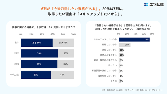 6割が「今後取得したい資格がある」。20代は7割に。