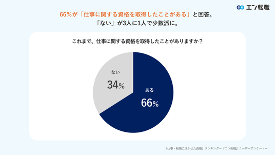 66%が「仕事に関する資格を取得したことがある」と回答。