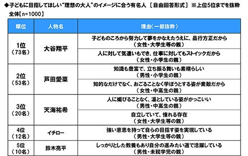 ・子どもに目指してほしい“理想の大人” 「大谷翔平さん」「芦田愛菜さん」が4年連続TOP2に