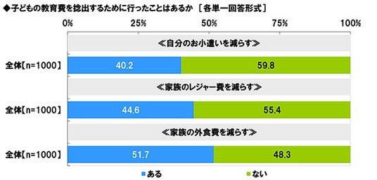 「自分のお小遣いを減らす」は親の4割、「家族のレジャー費を減らす」親の4割半、