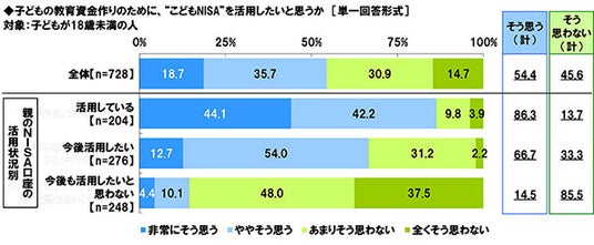 ・“こどもNISA”の活用意向 親のNISA口座を子どもの教育資金に活用中の人の8割半が活用を希望