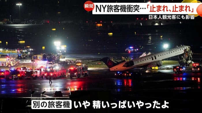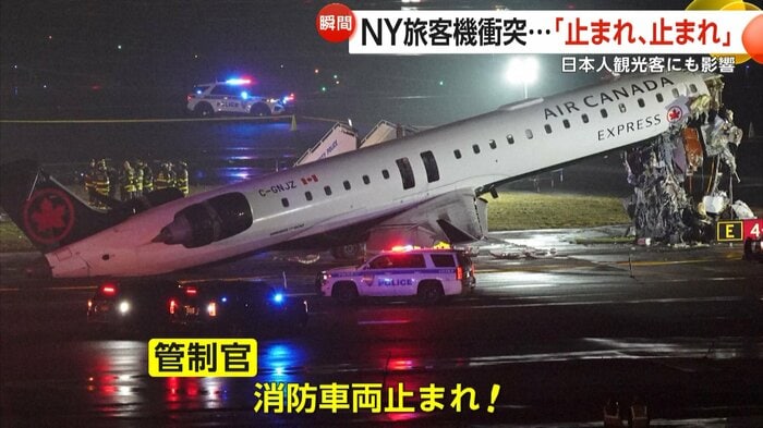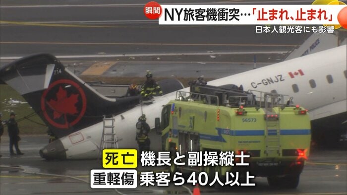 アメリカ・ニューヨークのラガーディア空港で22日、着陸した旅客機と滑走路を横切った消防車両が衝突し、機長と副操縦士が死亡、乗客ら40人以上が重軽傷を負った。