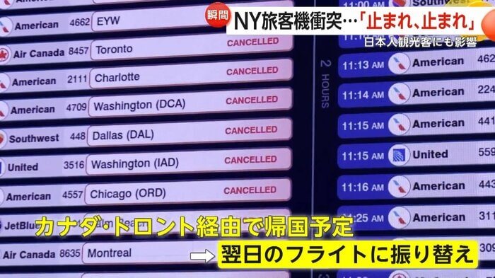 この日本人旅行客は、カナダのトロント経由で帰国する予定だったが、翌日のフライトに振り替えられたという。