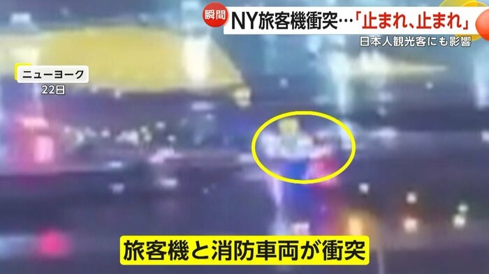 多くの人が利用するアメリカ・ニューヨークの空港で22日夜、旅客機と消防車両の衝突事故が発生した。