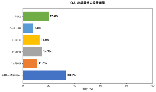 設問:過去に皮膚の異常(気になるほくろ、できもの、治らない傷など)を放置した経験はありますか?また、どのくらいの期間放置しましたか?