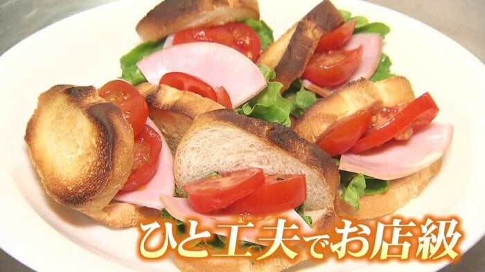 すると、焼き上がった後もバゲットがパカッと開いたままになり、崩さずにたくさんの具材を盛り付けられる。お店のようなボリュームサンドが家庭で簡単に作れるアイデアだ。